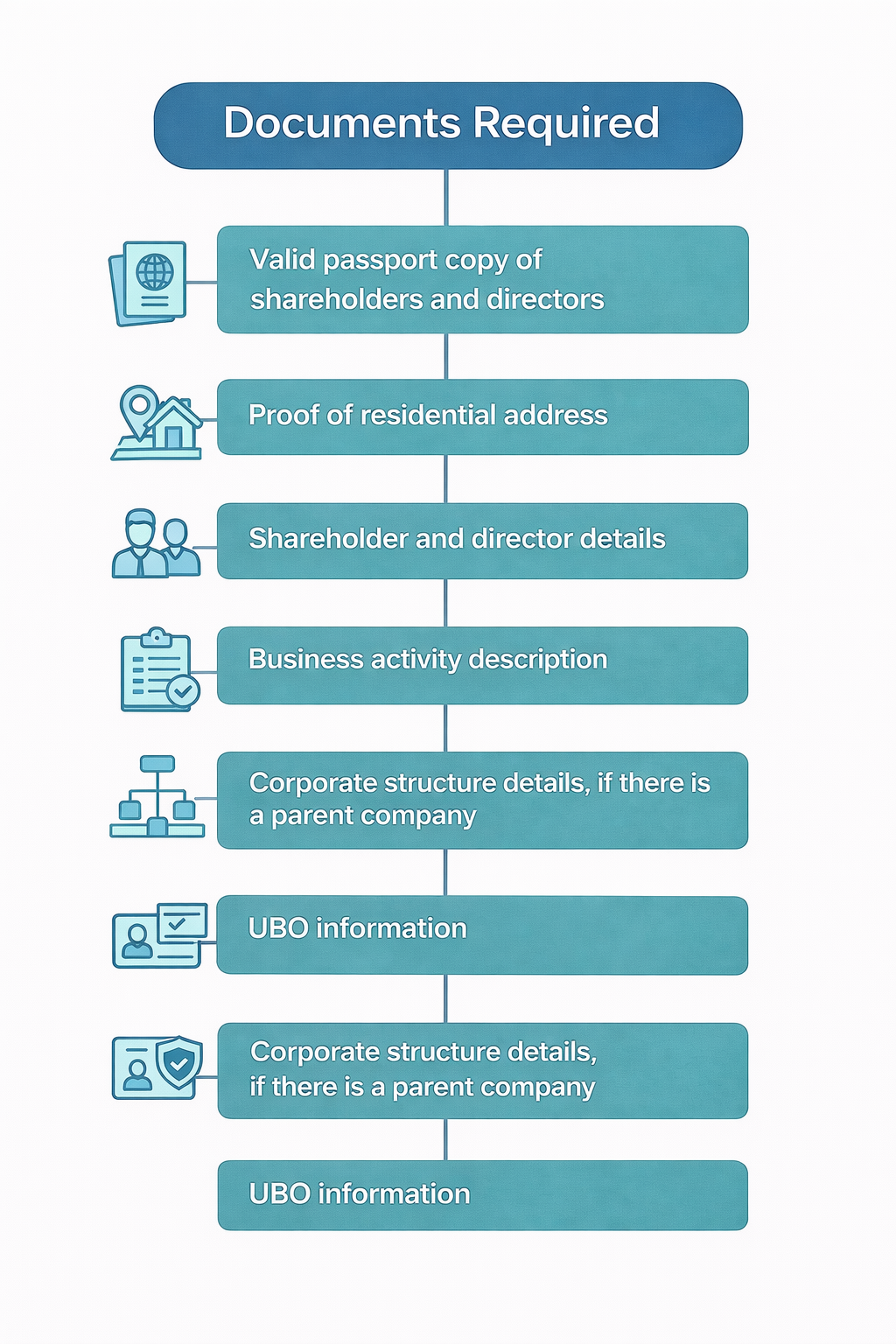 - Valid passport copy of shareholders and directors